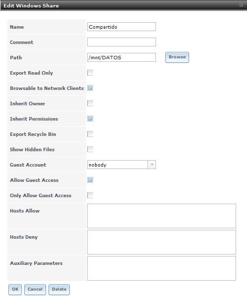 servidor NAS que ofrezca un disco de 20Gb accesible para cualquier usuario de